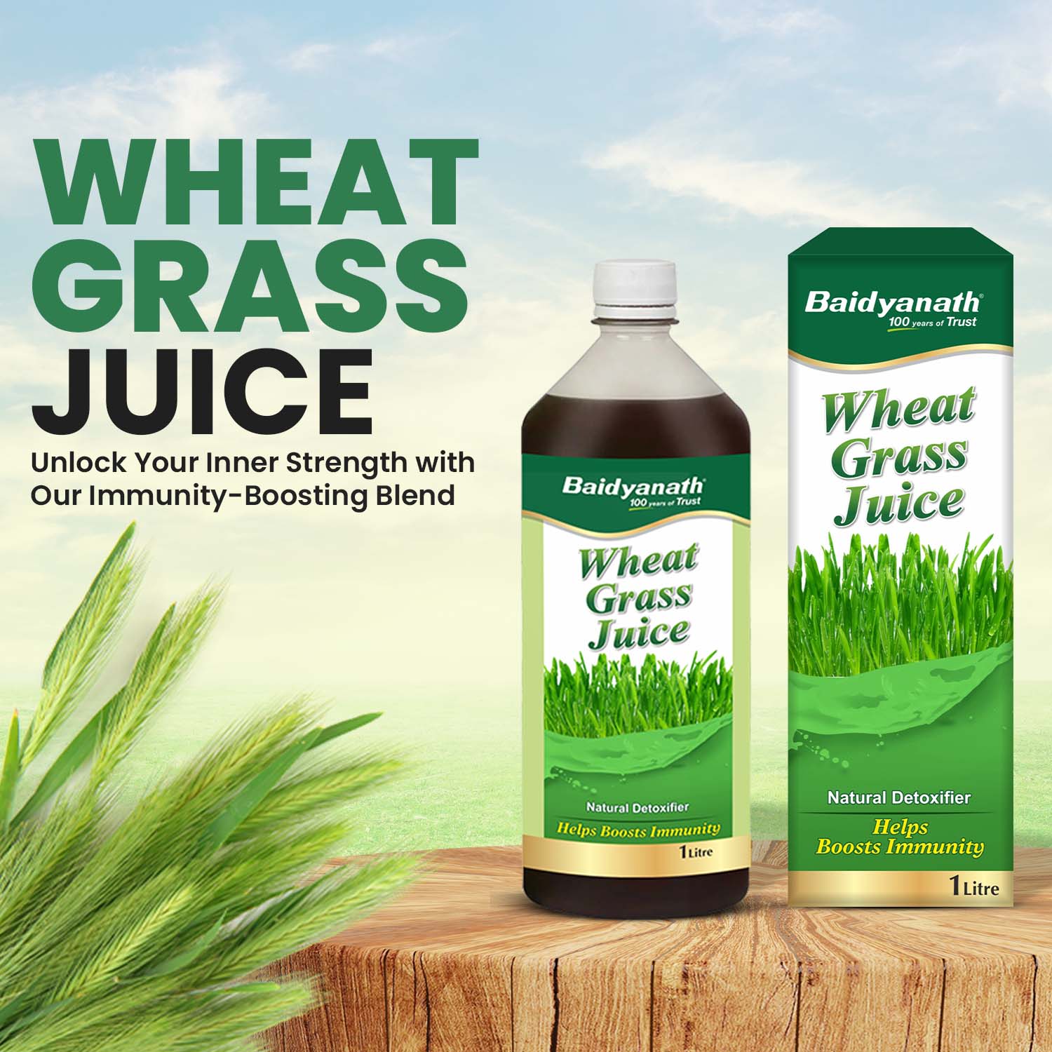 Baidyanath Wheatgrass Juice 1 L – Natural Detoxifier - Herbal Supplement to Help boost Immunity, Purifies blood Improves digestion & metabolism